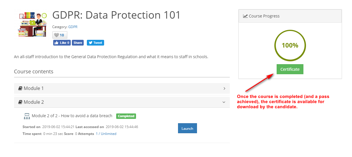 All you need to do, is upload staff to the Data Protection Knowledge Bank and instruct them to login and that the course is available.